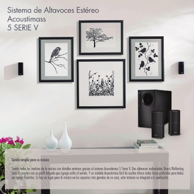 Sienta todos los matices de la música con detalles notorios gracias al sistema Acoustimass 5 Serie V. Dos altavoces rediseñados Direct/Reecting